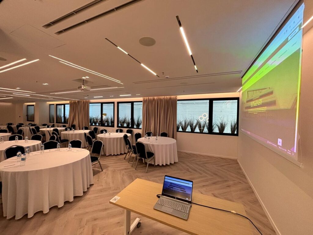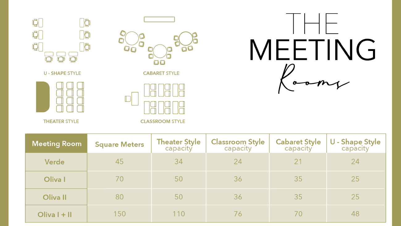 Our first option “Verde”, boasts a 50-square-meter exclusive meeting room, accommodating up to 40 individuals in theater-style seating or 24 in a classroom arrangement—perfect for fostering productivity and collaboration.